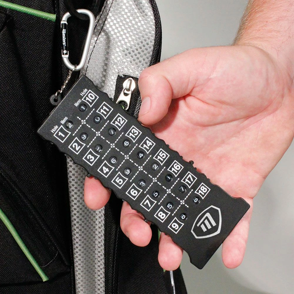 A simple and very effective way to keep your score on the golf course. Just turn the appropriate dial for the hole after each shot until you have completed the round, then add up the score! Also features a metal carabiner clip to attach it to your golf bag.